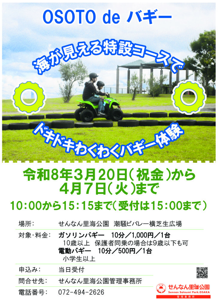 対象・料金ガソリンバギー 10分/1,000円/1台 10歳以上 保護者同乗の場合は9歳以下も可