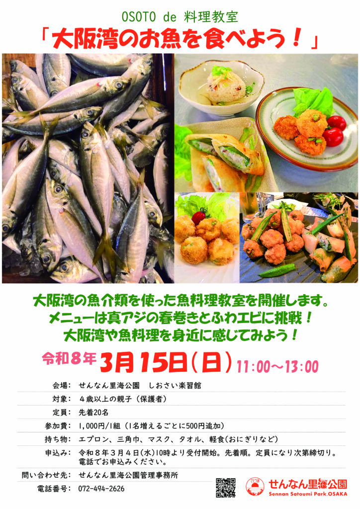 大阪湾や魚料理を身近にをコンセプトに大阪湾の魚介類を使った魚料理教室を開催します。メニューは真アジの春巻きとふわえびに挑戦します