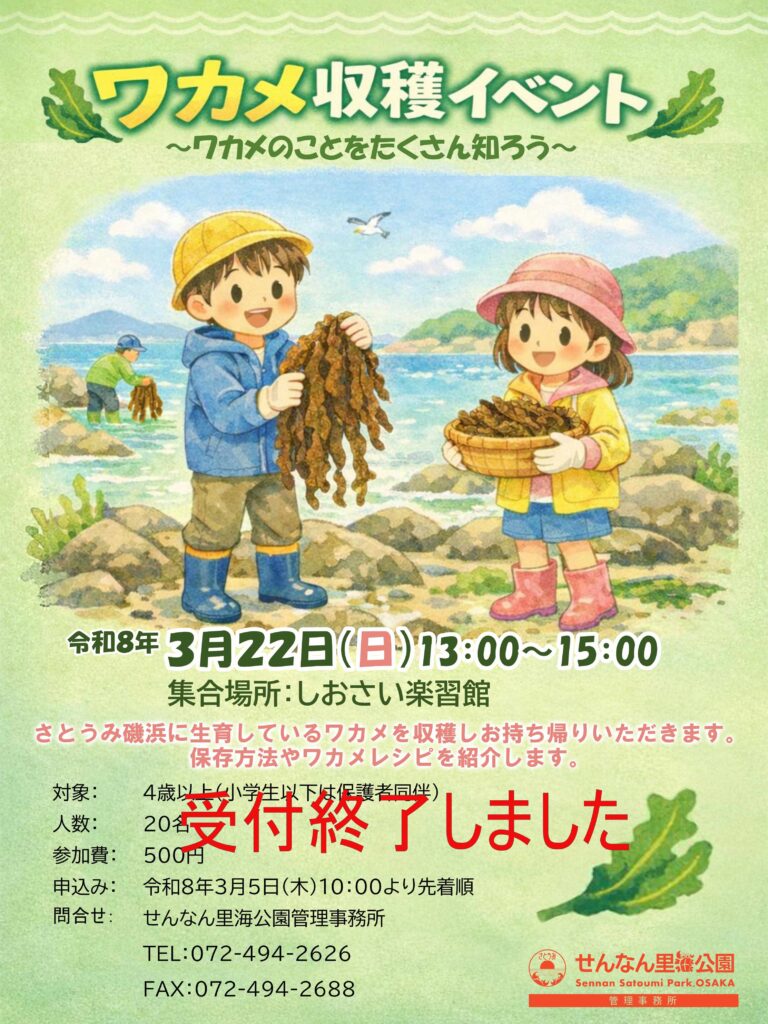 さとうみ磯浜に生育しているワカメを収穫しお持ち帰りいただきます。保存方法やワカメレシピを紹介します。