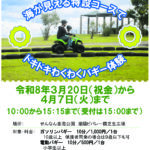 海が見える特設コースでドキドキわくわくバギー体験 開催日令和8年3月20日(祝金)から4月7日(火)まで開催時間10時~15時15分受付10時~15時(随時受付
