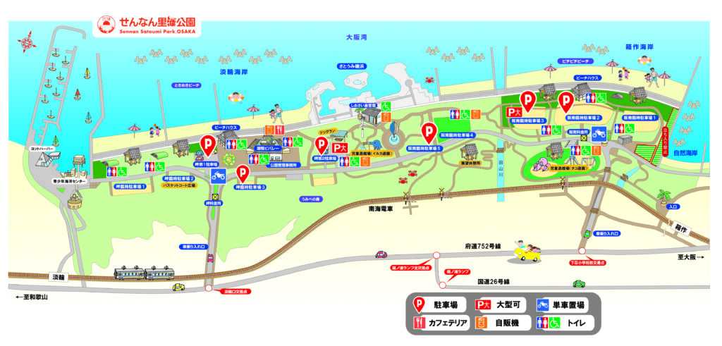せんなん里海公園の駐車場では、下記の手帳交付を受けた方が乗車している場合、その手帳(もしくは、ミライロID)をご提示いただくことで、駐車場の利用料金を全額免除とさせて頂いております。入庫時に、インターフォンに係員にお申し出の上、手帳等のご提示をお願いいたします。なお、大型車(バス)の場合は、事前に公園管理事務所へ料金免除の申請をしてください。
