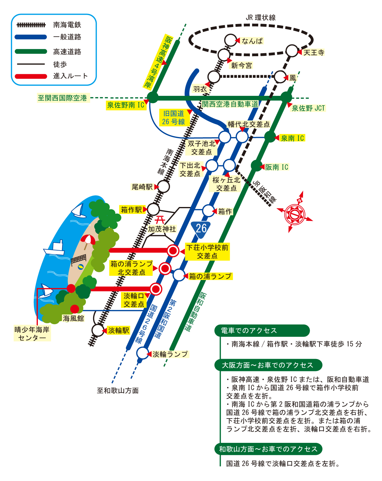 電車南海本線淡輪駅下車徒歩約15分
